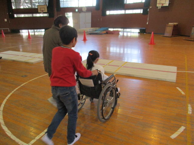 先日に引き続き、4年生が総合的な学習の一環で、福祉体験学習を行いました。外部講師の皆様の御指導のもと、車いすを押す等の体験をした子どもたち。わずかな段差を超えることも、車いすではとても大変だということに気付いた子どもたちがたくさんいたようです。