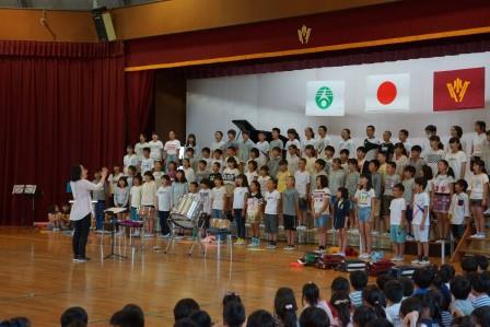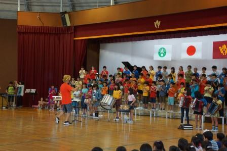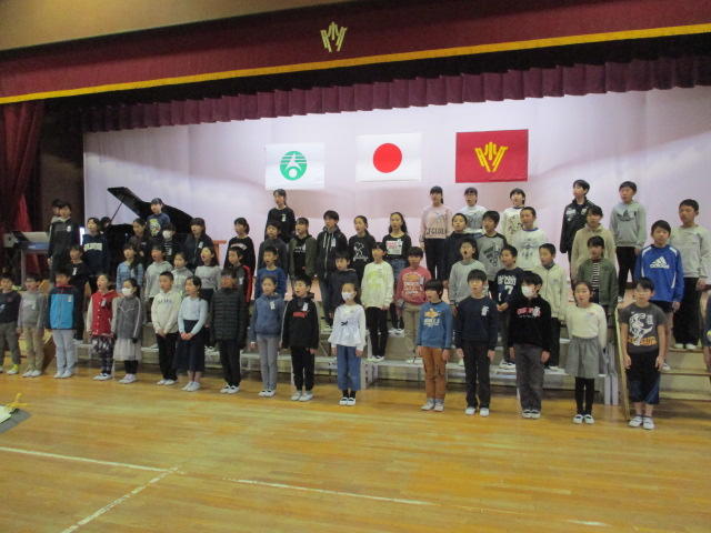 音楽朝会が行われ、全校で合唱を行いました。後半は金管クラブ児童の発表及び楽器紹介があり、会場は大きな拍手で包まれました。