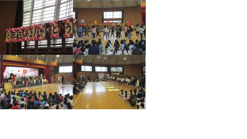 6年生を送る会が体育館で行われました。1~5年生の子どもたちは、今までお世話になった6年生に感謝の気持ちを込めて、歌や呼びかけ、色紙等のプレゼントを行いました。6年生からも下級生にお礼の歌と群読のプレゼントがありました。感動的で思い出に残る1時間となりました。