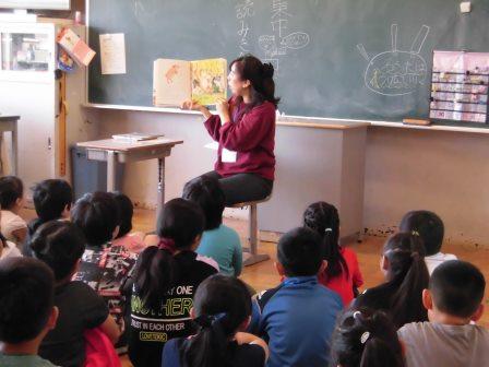 毎週木曜日の朝は「読書タイム」ですが、ボランティアの皆さんによる「読み聞かせ」が学年順に行われていきます。今週は、1年生各クラスで読み聞かせをしていただきました。また、今年度は、校長先生も読み聞かせのメンバーに加わります。今回は、3年1組で校長先生が読み聞かせをしました。子どもたちは興味津々のまなざしを向け、静かに本の世界に入り込んでいました。