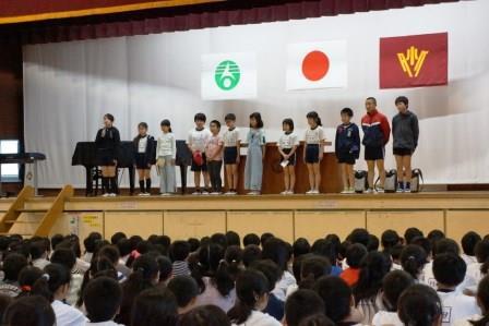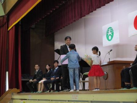 約40枚の賞状が該当児童に授与(合唱は合唱団員全員が起立し、代表者に授与)されました。