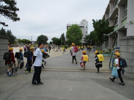 今日は、一斉下校がありました。今年最初の一斉下校で、しかも、班の集合場所が変更になっていることもあり、スムーズに集合できるか心配でしたが、班長、副班長が1、2年生を迎えに来て、きちんと通学班で並ぶことができました。校長先生からのお話をしっかり守り、交通事故に遭わないように気を付けて生活していきましょう。
