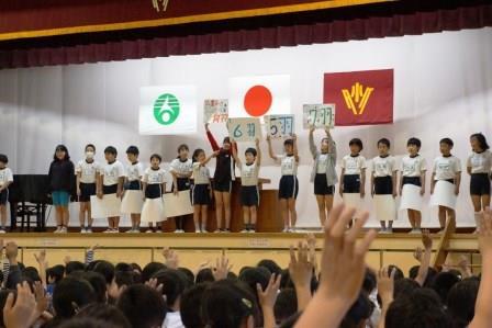 今朝は、音楽朝会でした。1年生に、上級生から音楽の挨拶「♫ おはようございます」を披露し、1年生も上級生を見習って、きれいな声で「♫ おはようございます」の音楽の挨拶をすることができました。その後、全校児童と先生方で、今月の歌「武里小校歌」を体育館にきれいに響かせました。