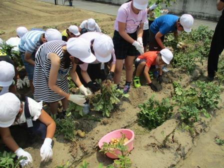 本校が学校ファームとしてお借りしている石川様の畑で、2年生と3年生がじゃがいも掘りをさせていただきました。石川様のご指導のもと、楽しくじゃがいも掘りをすることができました。今年は天候の関係もあり、例年以上に栽培が難しかったというお話を伺いました。子供たちは、収穫したじゃがいものお土産もいただき、大喜びでした