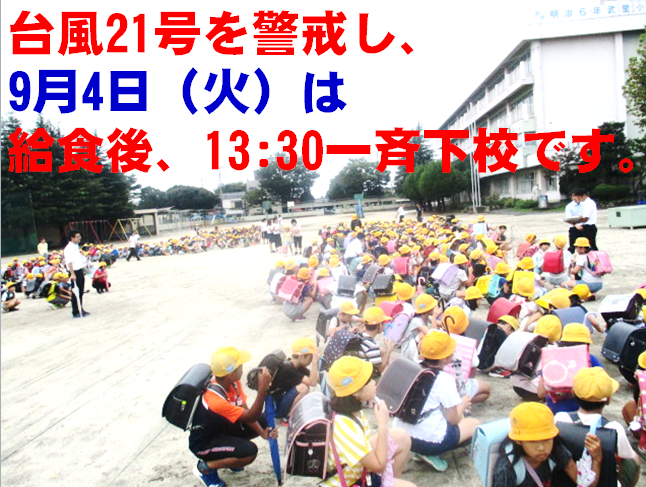 9月4日(火)は13:30に下校開始