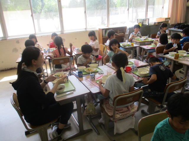 実習生の先生と給食