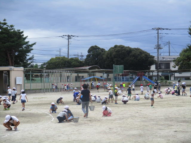 本日は愛校の日でした。活動の一環で、全校で石拾いや草とりを行いました。今月末には運動会を予定していますので、絶好のグランドコンディションがつくれそうです。