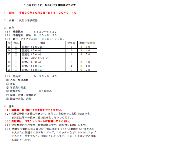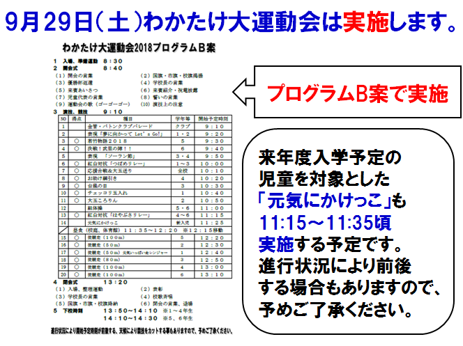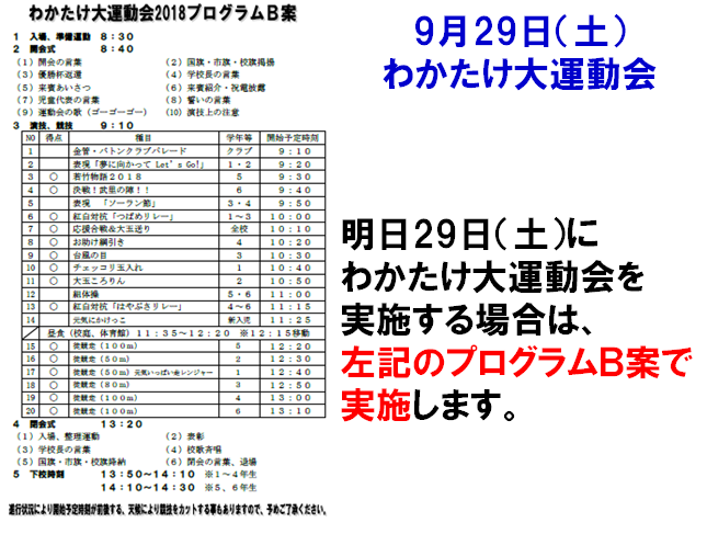 明日29日(土)の運動会の予定