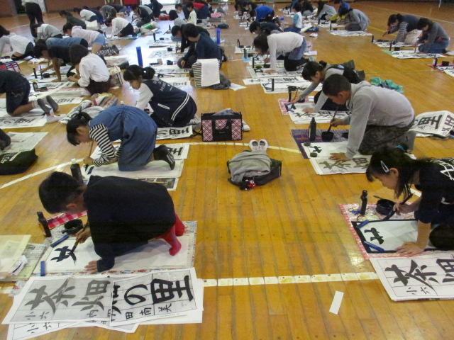 今日、明日と、体育館で書き初め競書会が行われます。保護者の皆様方は、今週の授業参観時に、児童の力作を御覧下さい。