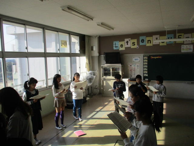23日の音楽朝会では、6-2の合唱の発表(ずいずいずっころばし、ブラックパンサー)がありました。美しい歌声に、下級性は驚きの表情をみせ、発表後には大きな拍手喝采でした。なお、6-2は、来週の市内音楽会にも出場します。