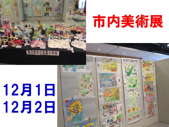 12月1日(土)2日(日)と、春日部ふれあいキューブで市内美術展が行われました。本校児童の素晴らしい作品も展示されていました。御来場くださった保護者の皆様、地域の皆様、ありがとうございました。