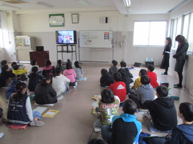 外部指導者(税理士)をお招きして、6年生が社会科授業を行いました。外部指導者のお話に子どもたちは真剣に耳を傾けていました。写真は、分かりやすい税の説明動画を視聴している場面です。