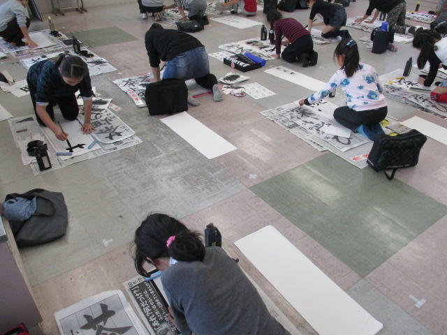 本日は、外部講師をお招きしての書き初め学習が行われました。5.6年生の子供たちは、集中して作品づくりに取り組むことができました。9日(金)は3,4年生が学習を行います。