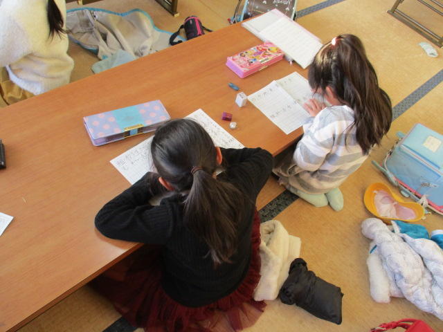 一昨日のどようひろばに引き続き、本日はげつようひろばが行われました。わかたけっこサポーターの皆様、保護者の皆様の御支援のもと、出席した子どもたちは、勉強や遊びに生き生きと取り組んでいました。