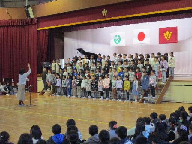 本日体育館で、音楽朝会が行われました。3年生のきれいな音色のリコーダー演奏と元気いっぱいな歌声が聞かれました。保護者の皆様、.御来校ありがとうございました。