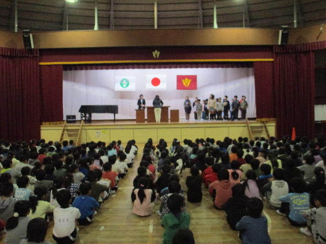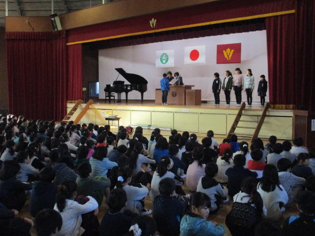 本日体育館で、日頃よりお世話になっている学校応援団の皆様をお招きして、ありがとう集会が行われました。子供たちはペンダント、花をお渡しし、メッセージ、歌、作文で感謝の気持ちを伝えることができました。