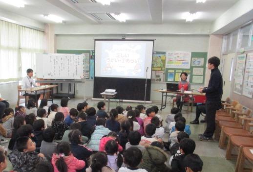 本日3校時に第2回学校保健委員会が行われました。学校薬剤師さんと外部指導者の方をお招きして、1年生を対象に、手洗い・うがい教室を行いました。児童は、正しい手洗い・うがいの方法を学ぶことができました。