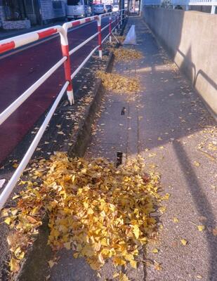 月曜日や風の強い日の翌日は大量に葉が落ちています。