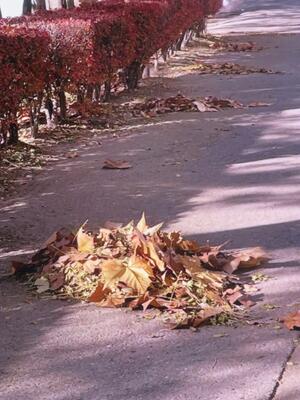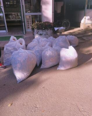 職員で落ち葉掃きをやっています。
