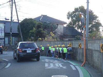 がいちばん心配な箇所です。教員も付き添いながら下校の見届け行います。急な飛び出しや信号や横断歩道のな