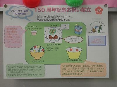 今日の給食、は150周年お祝い献立です。