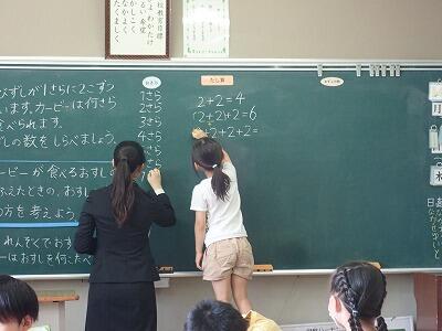 単元はかけ算。大人では当たり前のかけ算ですが、子供たちははじめて学ぶ計算の仕方です。