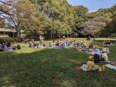天候にも恵まれ、子供たちは、学校ではできない体験ができました。青空の下、大宮公園でみんなと食べたお弁当