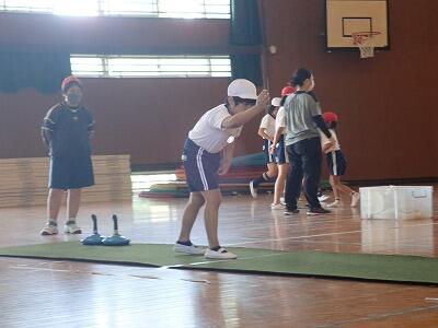 678組は、市スポーツ推進課職員を指導者として、軽スポーツ教室を行いました。