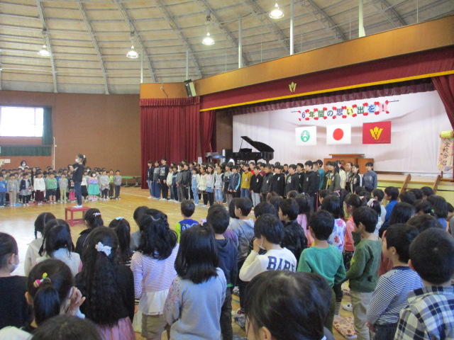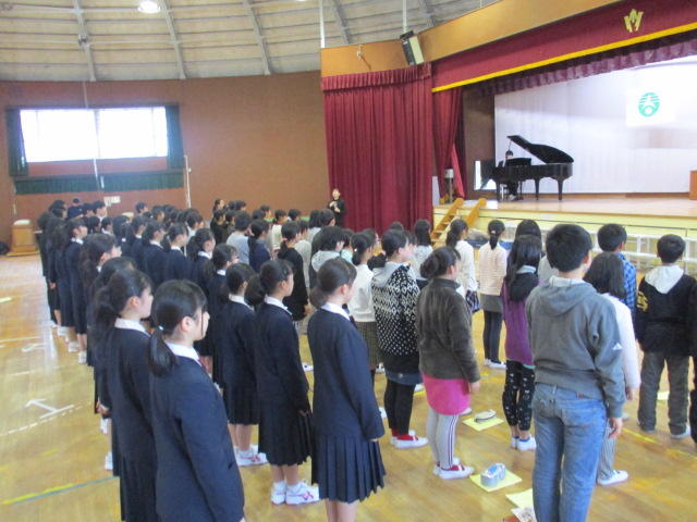 5年生の発表があり、美しい歌声を披露することができました。多数の保護者の皆様、御多用の中、足をお運びいただき、誠にありがとうございました。