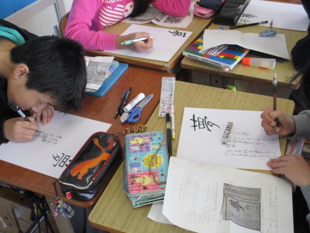 校内硬筆展が行われました。子どもたちは、お手本をよく見て、集中して字形を整えていました。