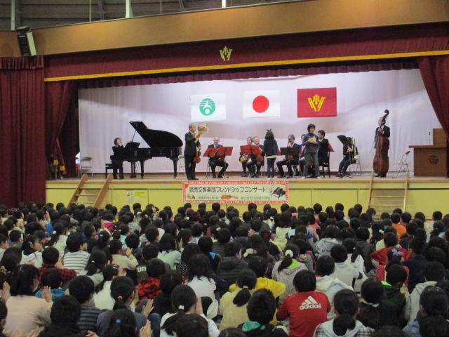 本日体育館で、6年生を対象tした「芸術家を招いての音楽授業」を行いました。こちらの写真は、