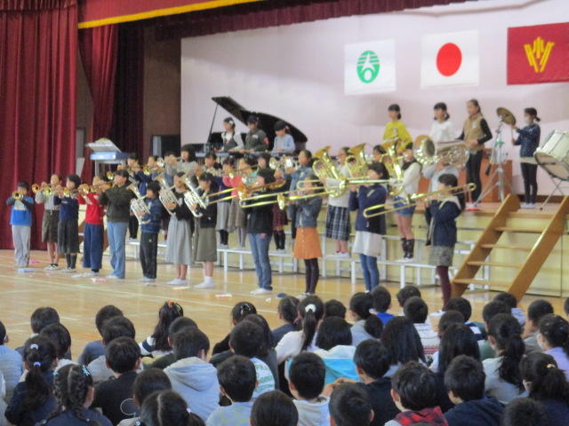 今年度最後の音楽朝会では、金管クラブの児童の迫力ある質の高い演奏が披露されました。