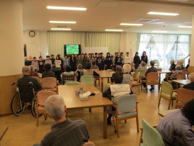 4年生児童がフラワーヒルを訪問し、入所している皆様とお話ししたり、歌の披露、施設見学等を行いました。「みんな優しい方ばかりで、施設jの設備も勉強になった」という感想の子供がたくさんいました。