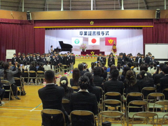 本日、卒業証書授与式が挙行され、6年生児童59名全員が、校長先生から無事に卒業証書を授与されました。