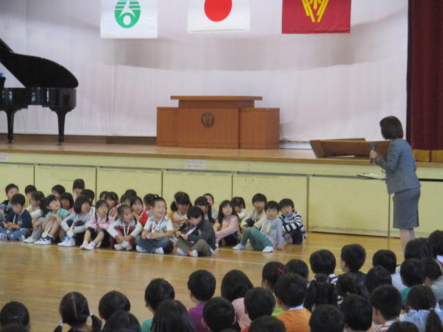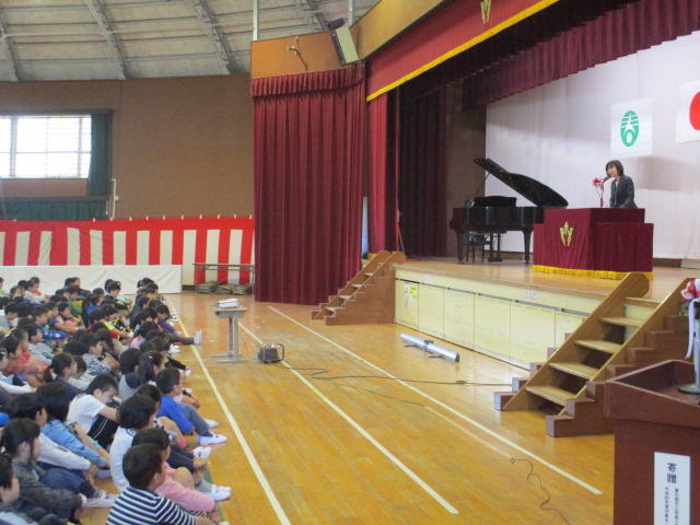 朝会での校長講話では、絵本「大きくなるっていうことは」の読み聞かせがありました。その後、①目標を持つこと②挨拶をしっかり行うこと③思いやりを持った行動をすることについての話がありました。