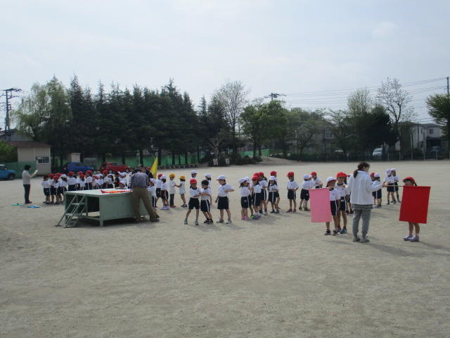 本日、第1回避難訓練を行いました。目的は①命を守るために新しい避難経路を覚える②命を守るために「おかしもち(おさない かけない しゃべらない もどらない ちかよらない)」を守るで、春日部消防署の皆様からも御指導をいただきました。命を守る訓練は今後も継続して実施していきます。