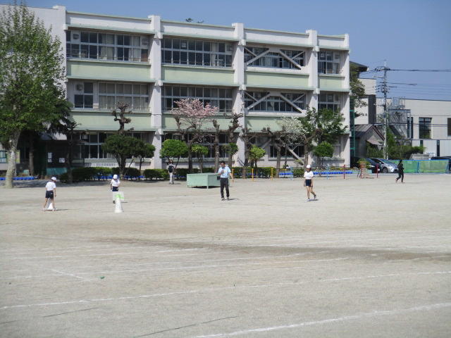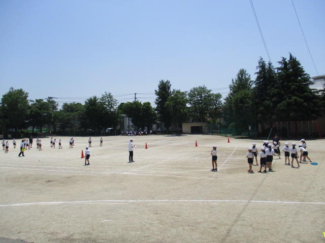 晴天の中、各学年で体力テスト(昔のスポーツテスト)が始まりました。子どもたちは、水分補給をまめに行いながら、自分の新記録に挑戦していました。