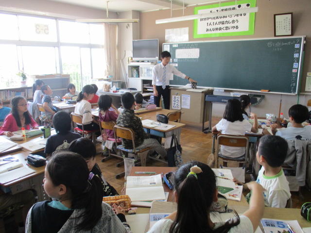本日午後、ゲストティーチャーをお招きして、5年生の子供たちは環境学習講座を行いました。限りある資源やリサイクルの大切さについてなど、体験型の授業に、実感を伴った理解をしていました。