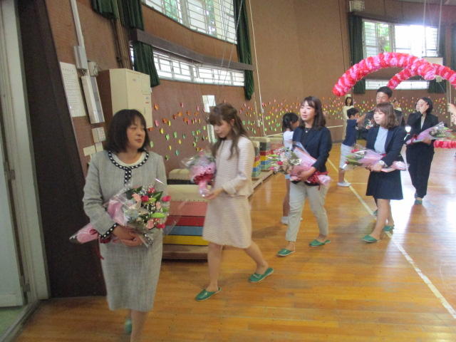 涙涙の離任式でした。子どもたちは久しぶりに異動した先生方とお会いして、久しぶりの再開を楽しんでいました。
