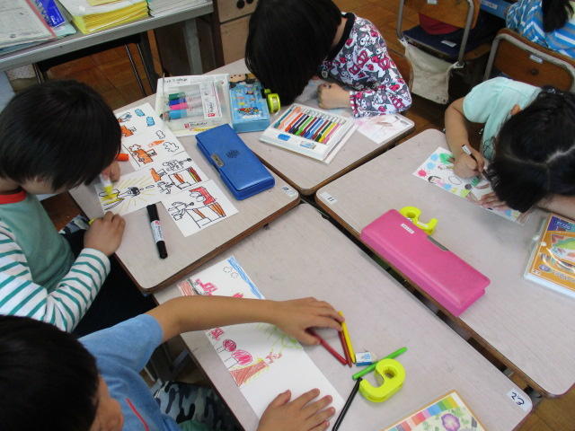 2年生図工授業の一コマです。とても集中して作品づくりに取り組んでいます。