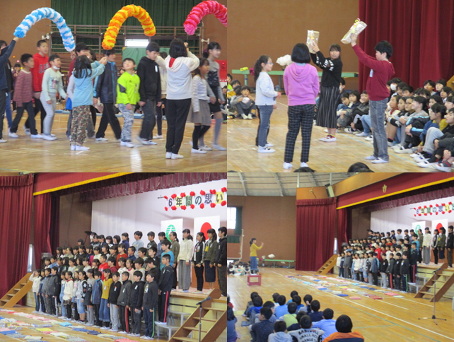 本日、3,4校時、体育館にて6年生を送る会が行われました。下級性から6年生に対するプレゼントの出し物、そして、6年生から下級性への御礼の出し物ともに心がこもっており、大成功の会となりました。御出席の保護者の皆様もありがとうございました。