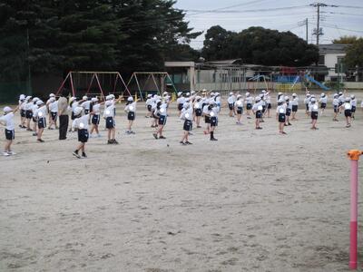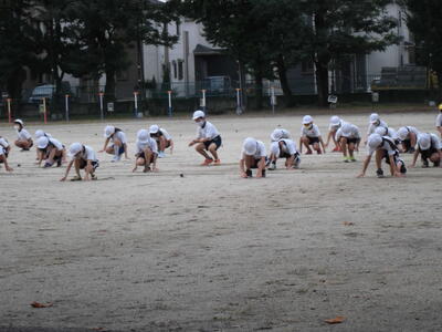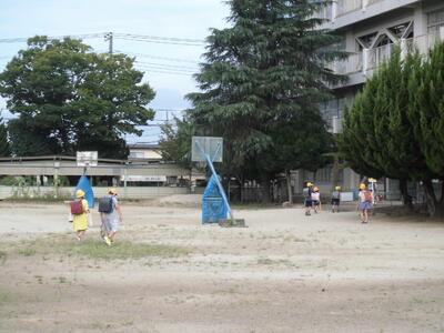 曇り空ですが、久しぶりに校庭で遊ぶことができました。