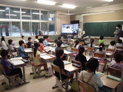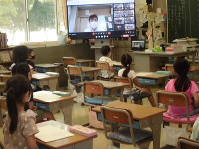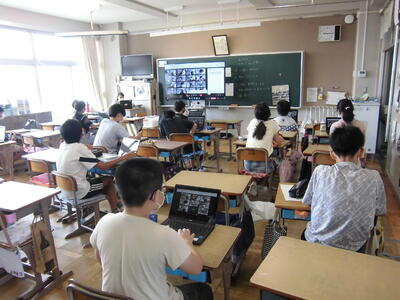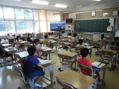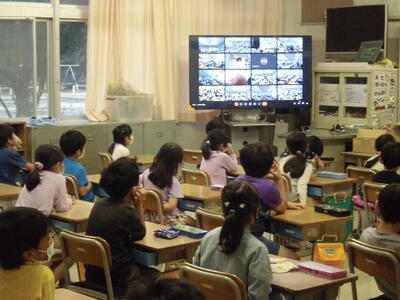 始業式や今月の生活目標についてのお話は、オンラインで行いました。