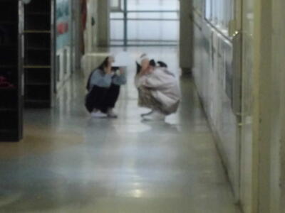 先程、河口湖の蓬莱家に到着しました。お昼とお土産の時間です。お土産屋では、お小遣いを気にし、一生懸命考える姿が微笑ましかったです。