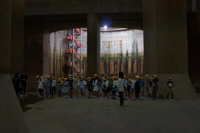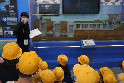 実際に走っているリニアを見て、みんな大興奮です。リニアの仕組みを体験できるコーナーもあり、楽しみながら学んでいます!