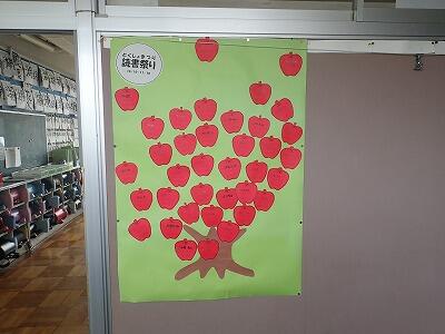 休んでいる仲間は、オンライン参加です。教室扉には読書まつりの掲示が始まりました。