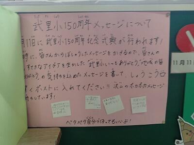 「武里小ありがとう」「地域の皆さんありがとう」気持ちを込めたメッセージコーナーができています。
