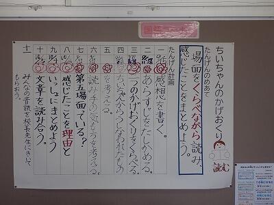 ちゃんのかげおくり」を音読します。これまで練習していた成果がとてもよくわかりました。まず、子供たちの姿勢がよ