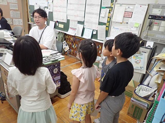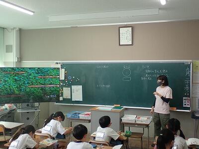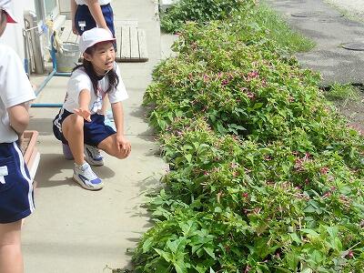 外を見ると3年生がいます。「何してるの?」「虫をとってます」と、入れ物に入れたチョウを見せてくれました。