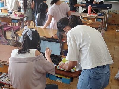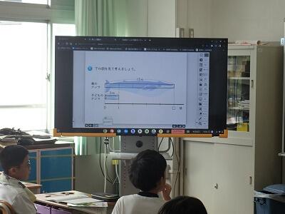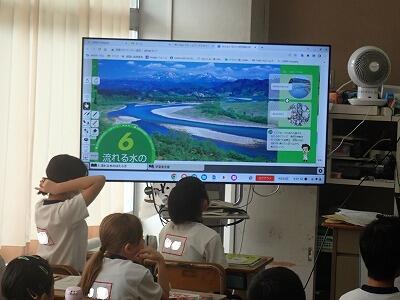 5年生は理科。雲と天気の変化の学習です。今日の空はどうでしょうか。タブレットも活用し、学びを深めます。